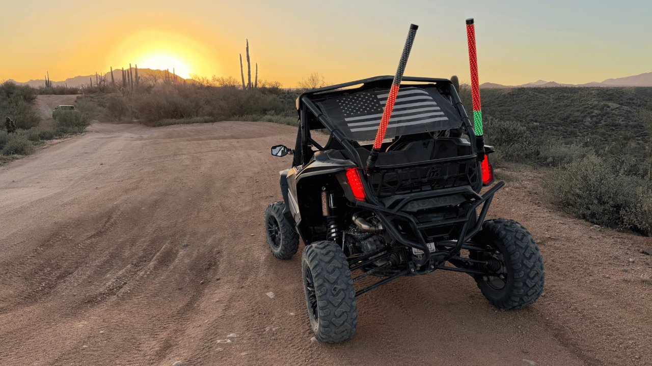 - Color & Uplighting (Free): Add color uplighting and LED accent lighting to your UTV for an unforgettable desert vibe — especially during sunset and evening tours. This upgrade includes whip lights and rock lights that bring the vehicle to life with vibrant colors while highlighting the terrain around you. The whip lights create a striking glow visible across the desert trails, while the rock lights illuminate the ground beneath the vehicle for a dramatic effect as you ride through canyons and open desert landscapes. It’s the perfect way to elevate your adventure and create a fun, unique atmosphere as the sun sets over the Sonoran Desert.